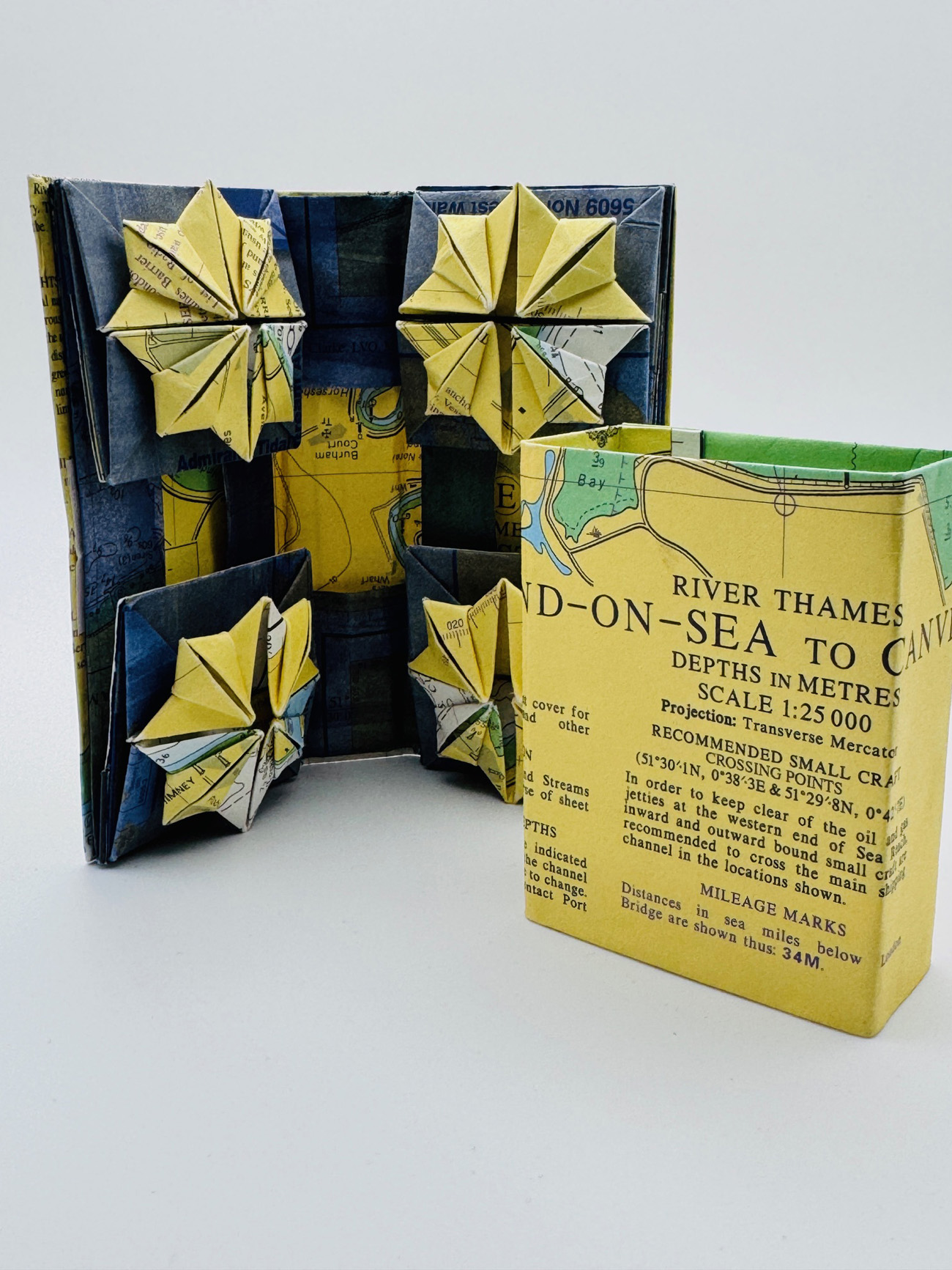 Whenever possible Jude uses vintage maps, books and charts particularly when making artists’ books. Vintage fabrics form a large part of her textile practice.